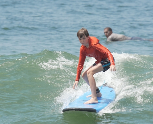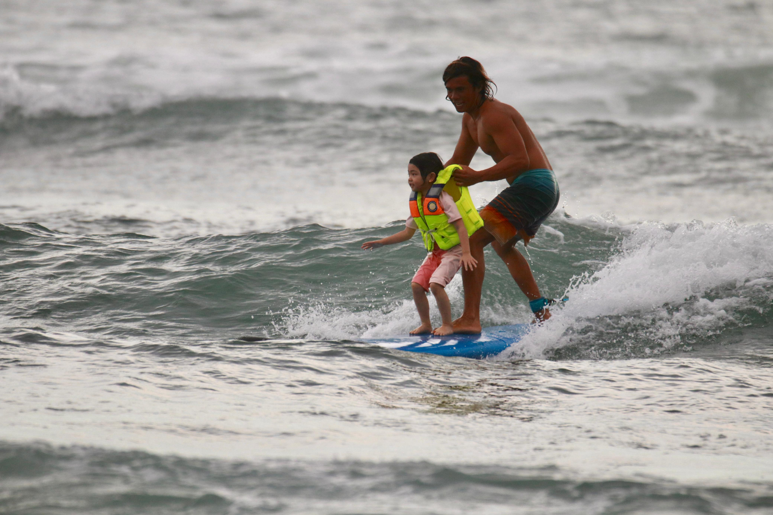 Our child surf lessons are designed to make learning safe, fun, and unforgettable. With patient, experienced instructors, kids gain confidence in the water while mastering the basics of surfing. For children under 8 years old, we recommend tandem surfing — riding the board together with an instructor — for extra safety and support.